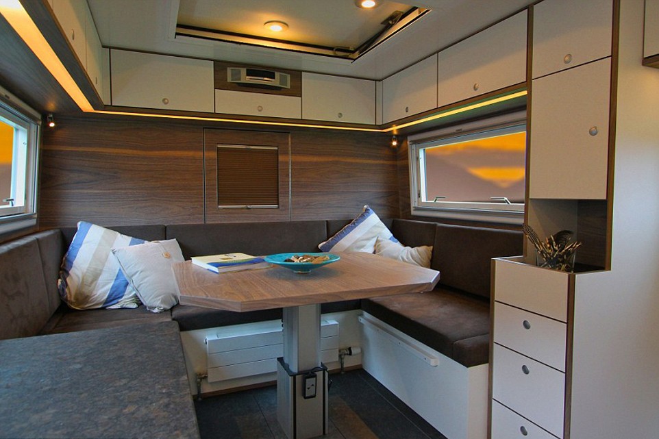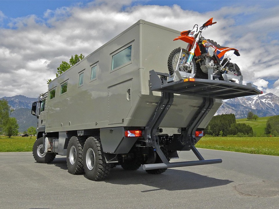 Pustolovci bodo takega vozila vsekakor veseli, z njim se bodo namreč lahko pognali čez drn in strn s pomočjo kolesnega pogona 6 x 6. Za lajšanje vsakdanjega življenja v divjini sta na voljo celo omyvatelný a sušička stroj, velik lednička a mrazák pa sta ob vsej tej opremi že tako samoumevna. Na zadku tovornjaka je še hidravlično dvigalo, na katerem je mogoče prevažati motorno kolo, za tiste krajše, solo izlete. Za najboljšo avanturo na šestih kolesih ta hip je treba odšteti dobrih 680.000 evrov.