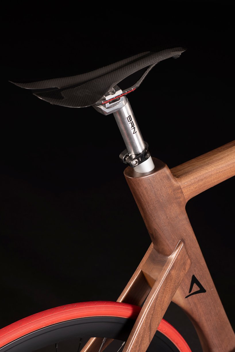 Výběrem dřeva jako hlavního materiálu se designéři snaží spojit starobylý materiál s moderním stylem a technologií. Dřevěný rám nabízí lehkost ve srovnání s tradičními ocelovými rámy, stejně jako dřevo tlumí vibrace a absorbuje nerovnosti na silnici. Kvůli hydroizolační úpravě dřevěných ploch jsou kolečka chráněna před nepřízní počasía matná barva nabízí kromě ochrany také odolnost proti poškrábání a oděru.