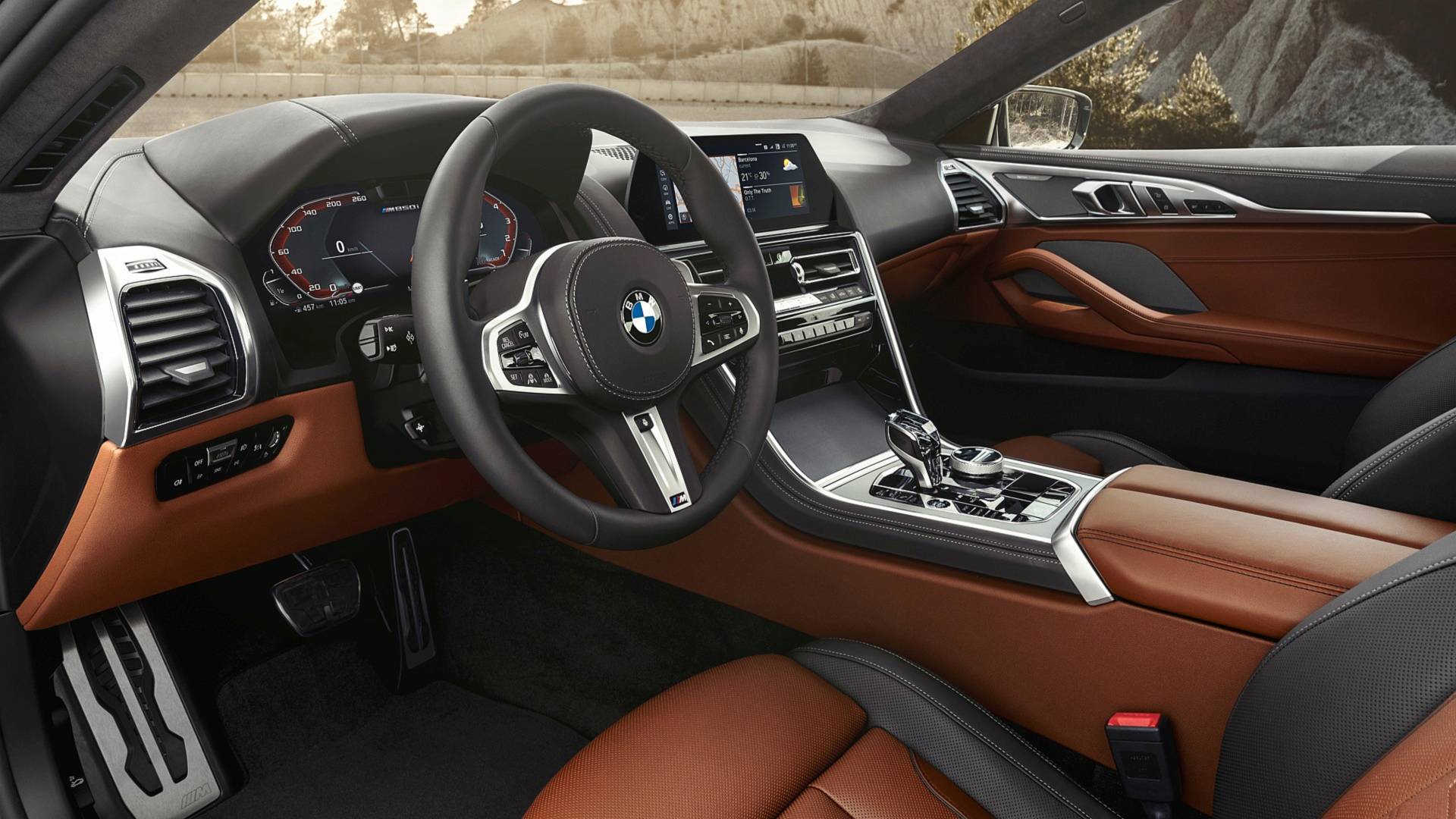 Uvnitř vás přivítá nové BMW 8 Coupé 10,3 palce přístrojový digitální displej, vedle kterého je také instalován 12,3 palce obrazovka, přes kterou se spravuje informační a zábavní systém a různá nastavení. Jak jsme u BMW zvyklí, i tentokrát bude k dispozici špičkový zvuk Bowers & Wilkins Diamond Surround Sound System, prostor pro bezdrátové nabíjení elektronických zařízení, nerezové vložky a dokonce i skleněná tlačítka a spínače.