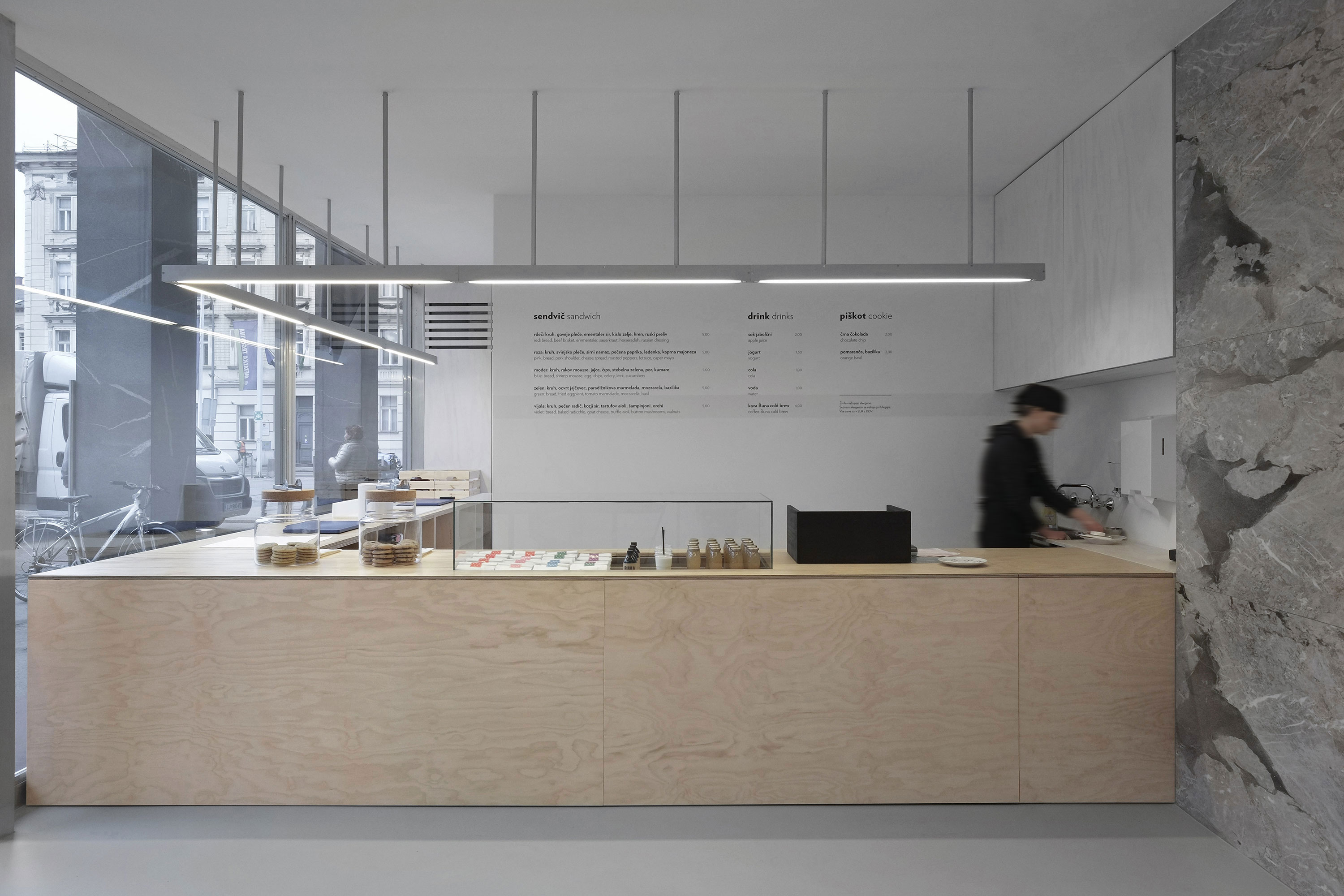 Je k dispozici pět různých sendvičů, které se připravují přímo ve výloze před zraky kolemjdoucích. Tyto kulinářské výtvory ale jdou daleko za rámec slova „sendvič“ – chléb vyrobený podle vlastní receptury, v němž se pečlivě vybrané a připravené ingredience vzájemně doplňují chutí i strukturou, promění tento jinak nenápadný pokrm v nezapomenutelný zážitekJako dezert jsou k dispozici velké domácí koláče. cookiesa nyní se přidala i rodina Brodo salátyAutoři baru s občerstvením Šílený Brodo dokázalo nastavit nový standard pro sendviče. A kdo ho chce dosáhnout, nebude mít lehký úkol.