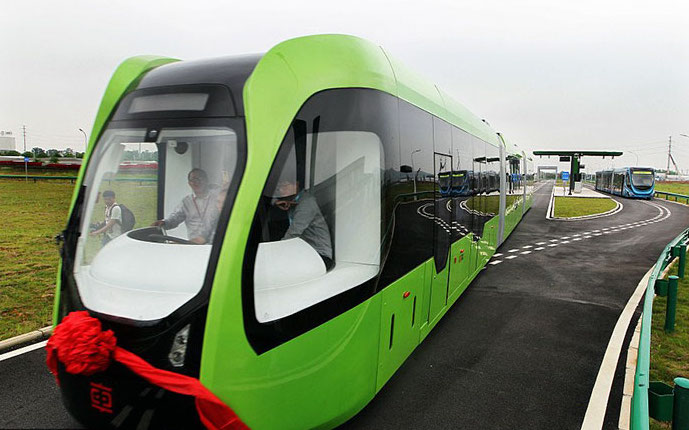 Číňané znovu usilují o titul 'první na světě', tentokrát s vlakem ART bez strojvedoucího, což je autobus, tramvaj a vlak v jednom. Nejezdí se po kolejích, ale po tom, co budou bílé čáry na silnici.