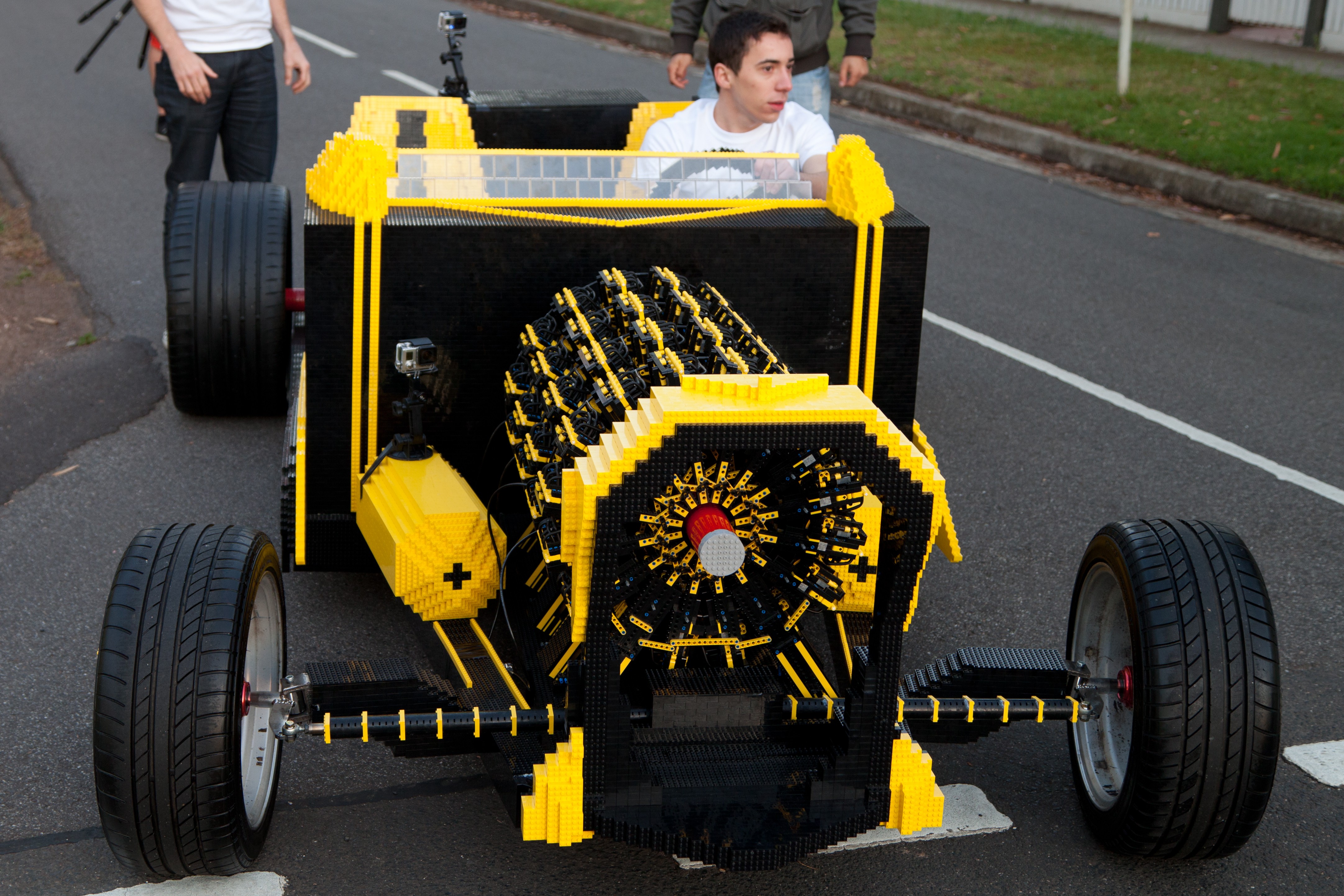 Zgodba se je začela z tweetom Steva Sammartina, ki je iskal podpornike projekta in dobil 40 investitorjev, ki so s sredstvi priskrbeli 500.000 lego kock, potrebnih za izdelavo avtomobila. Avtomobil so “sestavili” in načrtovali v obdobju 18 mesecev. Skoraj v celoti je sestavljen iz lego kock, le določeni mahanski deli ter gume avtomobila seveda niso del “lego rešitve”. Avtomobil pohony pravcati “Lego motor”, ki deluje na kompresiran zrak z njim pa doseže najvišjo hitrost 30 kilometrov.