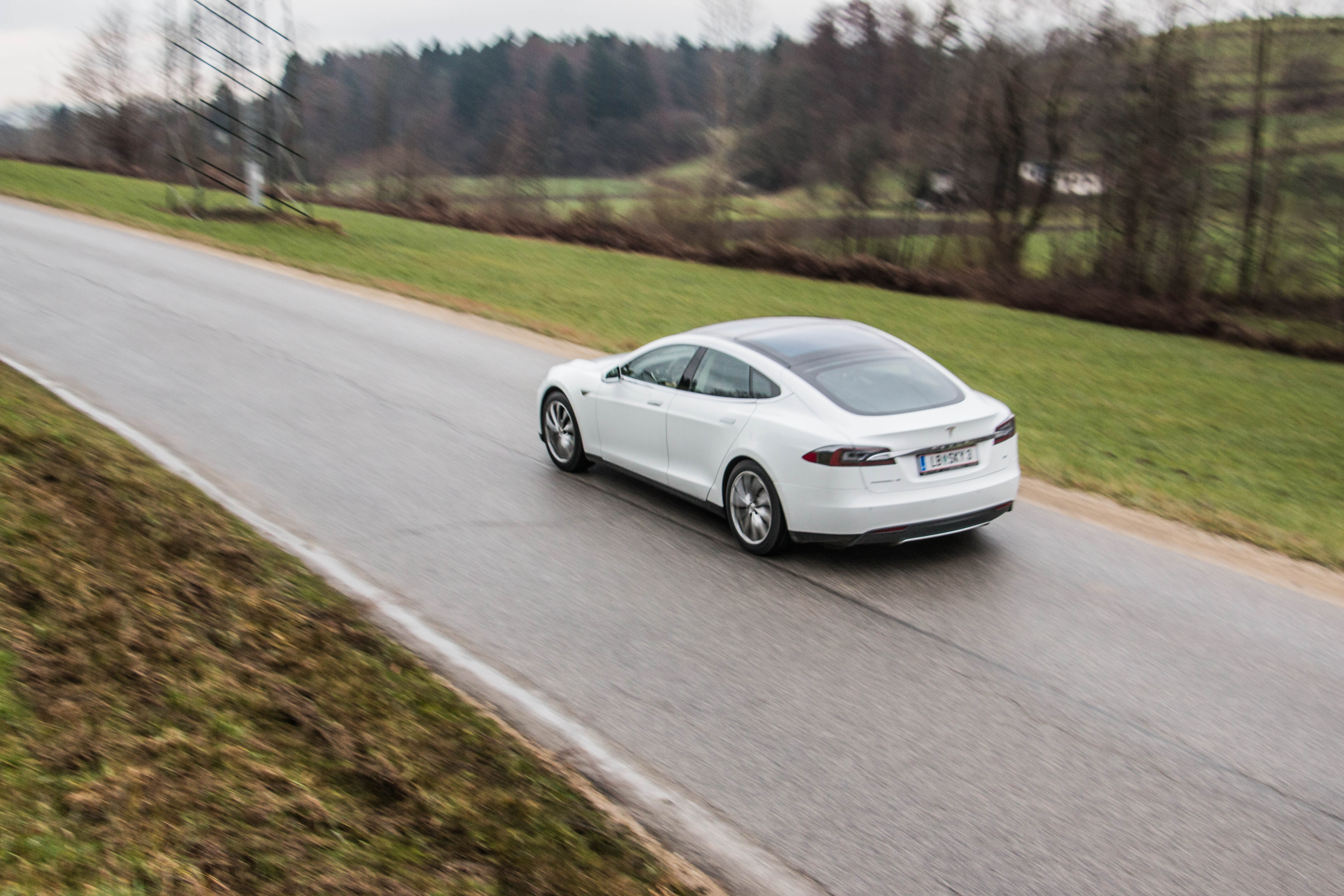 Tesla S je nekaj kilogramov lažja od Mercedesa razreda S in tehta 2.108 kilogramov. Teža se načeloma pozna, a vendar zaradi konfiguracije in namestitve baterije po celotnem dnu avtomobila, ta teža niti ni tako zelo moteča. Konec koncev, se mora s podobno spopasti praktično vsak njen konkurent v primerljivem razredu. Avtomobil suvereno sede v ovinek in ne beži iz njega nepričakovano. Celo več, zdi se da ga voznik lahko izjemno pred-vidljivo kontrolira. Nekoliko veselih preglavic nam je na trenutke povzročal zadek, ki ga odlično krotijo elektronski sistemi, a je vseeno na trenutke uspel zaplesati salso, ki navdušuje. In prav ta “salsa” zadka Tesle S, nam govori zgodbo, da bo vožnja z električnimi vozili prav tako zabavna kot z motorji na notranje zgorevanje. Pri tem pa po pravici povedano nismo pogrešali zvoka motorja, kot ga pogrešajo mnogi. Namreč Tesla povzorča zvoke in ni neslišna, kot ni neslišen zvok električnega motorja. Je le drugačen in atipičen od obstoječih zvokov avtomobilov. Urbana legenda namreč pravi, da je Tesla ni slišna, kar pa lahko označim kot eno večjih neumnosti in neresnic, ki se jih zapisuje na račun električnih vozil. Oziroma kot eno od njihovih pomankljivosti. To je približno takšna izjava, kot bi nekdo izjavil, da pogreša romantično sopihanje parne lokomotive in to leta 2014. Avto povzorča zvoke, le ti so resnično drugačni in za odvisneže od bencinskih hlapov bo potrebno privajanje.