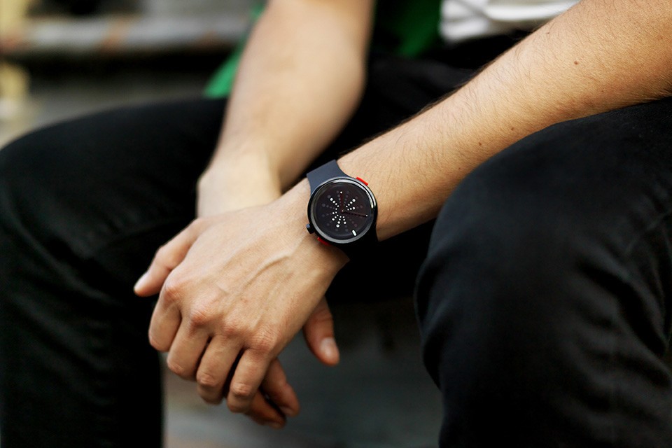 Co sledovat to je náramkové hodinky (Neřekl bych zrovna chytrý, ale spíš hybridní hodinky) švýcarský startup, který zmrazí okamžik v časeStisknutím speciálního tlačítka červené tlačítko Zaznamenávají určitý čas a k tomuto času si můžete prostřednictvím aplikace přidávat poznámky a fotografie. Hodinky mají ciferník vyrobený z elektronický inkoust, zatímco mechanické ručičky jsou tradičně zodpovědné za měření přesného času.