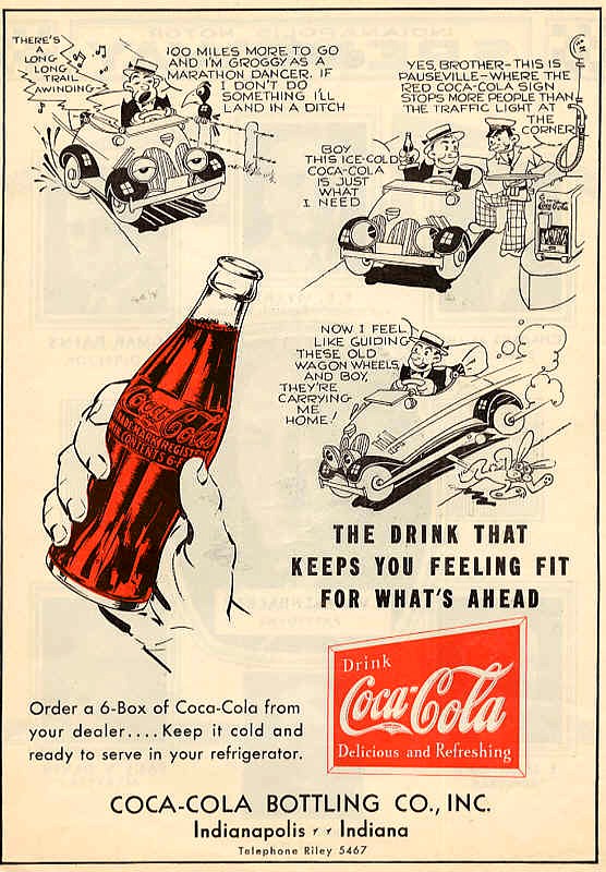 Coca-Cola byla vytvořena jako náhodný objev lékárníka Johna Stitha Pembertona. Snažil se napodobit francouzského vynálezce, který jako první vyrobil víno z koky, ale prohibice v Americe mu nedovolila vyrábět alkoholický nápoj, a tak zamířil na nealkoholický. Vše ostatní je historie, do které se svými tištěnými reklamami psala i Coca-Cola.