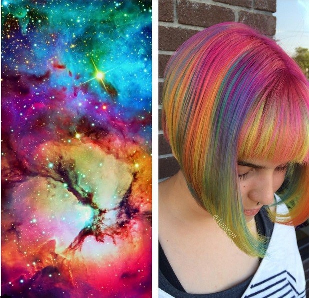 Šedé a bílé odstíny už zřejmě nejsou dostatečně zajímavé, protože ženy si začaly barvit vlasy pestrými barvami. Jestliže ale barevné kombinace zářivých barev byly opět aktuální inspirací, nový trend barvení vlasů odráží vesmír a přírodní jevy, jako je polární záře. Ženy se nyní obracejí k nebi pro inspiraci a motiv na hlavě. A nejlepší věc na barvení vlasů v barvách vesmíru? Máte nad sebou celou galaxii inspirace!