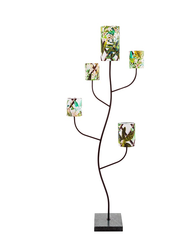 Domácí divize módního domu Christian Lacroix spojila kreativní síly se specialisty na osvětlení Forestierem a vytvořili kolekci lamp zdobených grafickými potisky tropických květin a propletených kapradin.