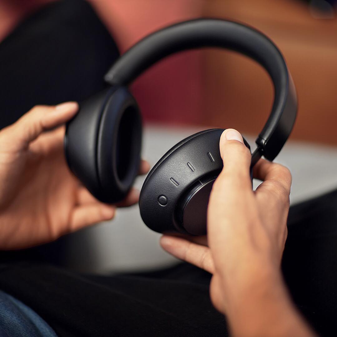Slušalke imajo shranjene podatke za povezavo z do tremi napravami, med njimi pa preklapljamo s pritiskom na gumb. Sicer je upravljanje s slušalkami tudi drugače jednoduše, saj je cela desna površina slušalk občutljiva na dotik, da prek nje prilagajamo glasnost, dušenje hrupa in podobno.