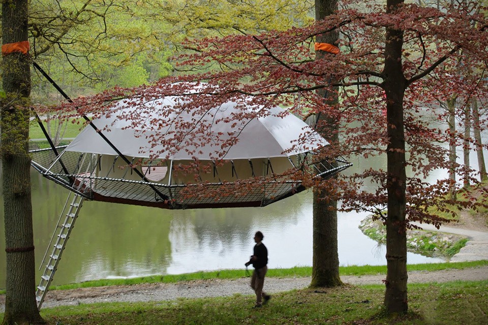 Dom'Up přenosný dům na stromě je to všechno a ještě víc, o čem jsme jako děti snili. Jde o extrémně propracovaný prostor, osmibokou platformu, která snadno konkuruje pohodlí domova, neboť obsahuje dvoulůžko a terasa. Byl vyroben odborníkem na ovoce z Dánska, Bruno de Grunne, spolu s francouzskou stromovou společností Trees and People, takže je pochopitelné, že je navržena tak, aby za sebou zanechala nezanechává na stromě žádné stopy (žádné vrtání, šroubování do kufru atd.). A protože je nad zemí, nenutí zvířat, k pohybu po stanu a navíc nás může před některými i ochránit. Záleží jen na tom, kam to „pověsíme“.