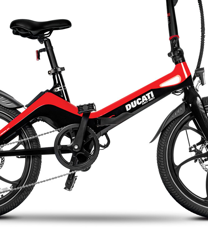 Ducati MG-20 je první skládací elektrokolo této italské značky, která je jinak známější pro rychlé a extrémně výkonné motocykly. Aerodynamický tvar motorky je jistě srovnatelný s tvarem motocyklů Ducati. Kolo MG-20 bylo navrženo pro jízdu ve městě, protože je svižné a lehké. Rám a ráfky jsou vyrobeny z hořčík, což má výrazný vliv na váhu kola a exotický materiál je odolný a dobře přenáší a tlumí nárazy.