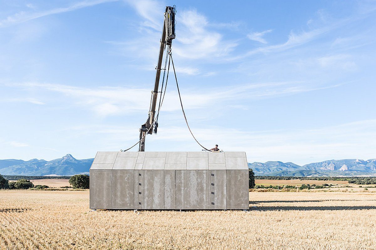 Světu byl představen koncem července letošního roku, dům je pohodlný pro dvě osoby a lze jej snadno přemístit nákladním vozem. Samotný dům je také jednoduchý a bez zbytečných zavazadel. Exteriér je minimalistický, jak jen to jde, stěny a střecha jsou ze dřeva a cementu. Dům je v matně šedé barvě, a proto se dá začlenit do jakéhokoli prostředí, ať už kamkoli půjde. Všechny materiály byly vybrány s velkým ohledem na životní prostředí a všechny jsou recyklovatelné.