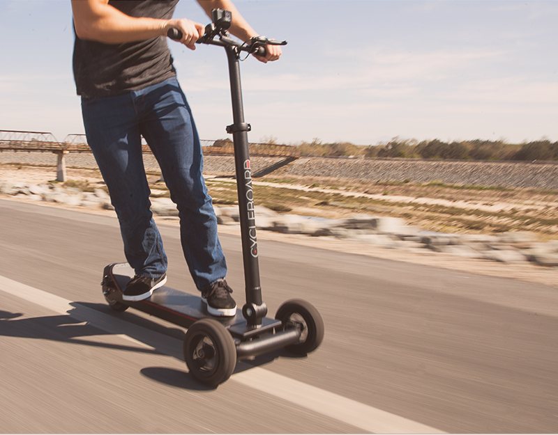 Cycleboard je nový hybrid na poli elektrických vozidel. Jde o kombinaci skateboardu a snowboardu a jak se říká nejuniverzálnější elektrická koloběžka na světě. Ideální pro každého, kdo chce něco jiného.