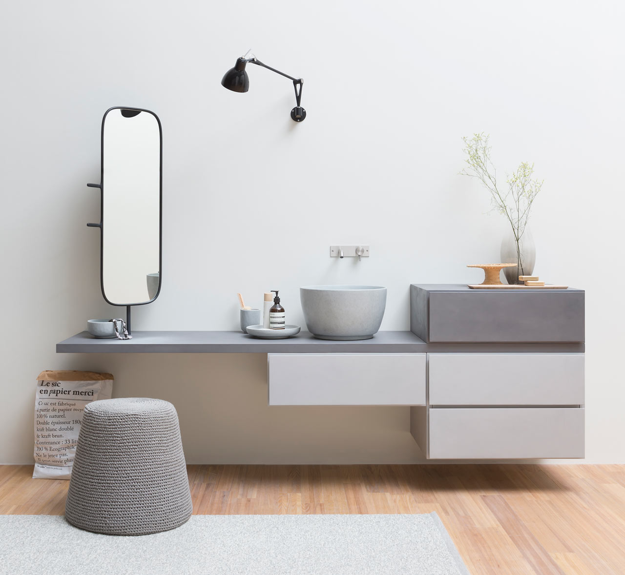 Esperanto je najnovejša kolekcija kopalniškega pohištva italijanskega podjetja Rexa Design, ki jo je oblikovala industrijska oblikovalka Monica Graffeo. Modularne enote, ki se med seboj ujemajo kot delci sestavljanke, so oblikovane z namenom, da z njimi kar najbolj izkoristimo prostor, poleg izjemne uporabnosti pa jih odlikuje prefinjen sodobni dizajn, ki je kot nalašč za opremo minimalističnih kopalnic z industrijskim pridihom. Elemente lahko poljubno obesimo na zid ali pa s stilsko dovršenimi nogicami postavimo na tla. Potem ko izberemo elemente in jih sestavimo, videz zaokrožimo z estetskim umivalnikom, ogledalom in držali za brisače. Popolno!