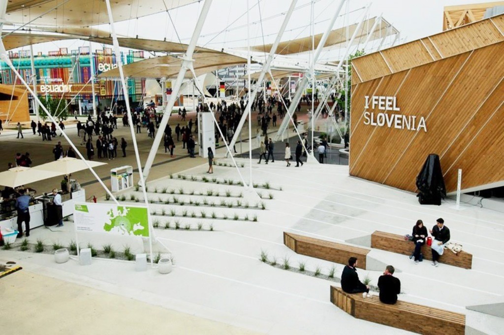 Navrhli provizorní a zároveň „pojízdný“ pavilon (po výstavě se přesune do Slovinska). SoNo architekti a stojí na hodně ve velikosti 1910 m2 na skvělém místě vedle italského hostitelského pavilonu. Světové výstavy Expo se konají každých pět let s cílem představit na výstavě země na určité aktuální téma. Tématem letošní světové výstavy je jídlo a nese se pod heslem Krmení planety, energie pro život nebo Jídlo pro planetu, energie pro život.