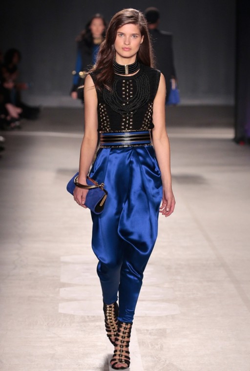 Na módní přehlídce, která se konala na newyorské Wall Street, se mimo jiné objevily hvězdy kampaně pro módní spolupráci - Gigi Hadid, Kendall Jenner a Jourdan Dunn, která oblečená ve fantastických vyšívaných a lesklých módních kouscích s přísnými tvary od Balmainu přesvědčila všechny přítomné.