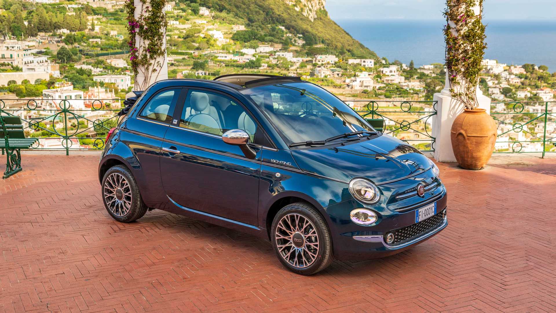 Interiéru dominuje také námořní tématika s bílým a modrým čalouněním, palubní deskou s mahagonovou texturou a logem Yachting. Hliníkový práh je dalším detailem, který lze s jachtou spojovat. Model Fiat 500C bude svému většímu bratrovi velmi podobný, a to všechny 500 kopií, který se bude prodávat v Itálii, Německu, Francii, Španělsku a Švýcarsku, dostane speciální emblémy s písmenným označením zemí, jak jsme zvyklí z minulosti.