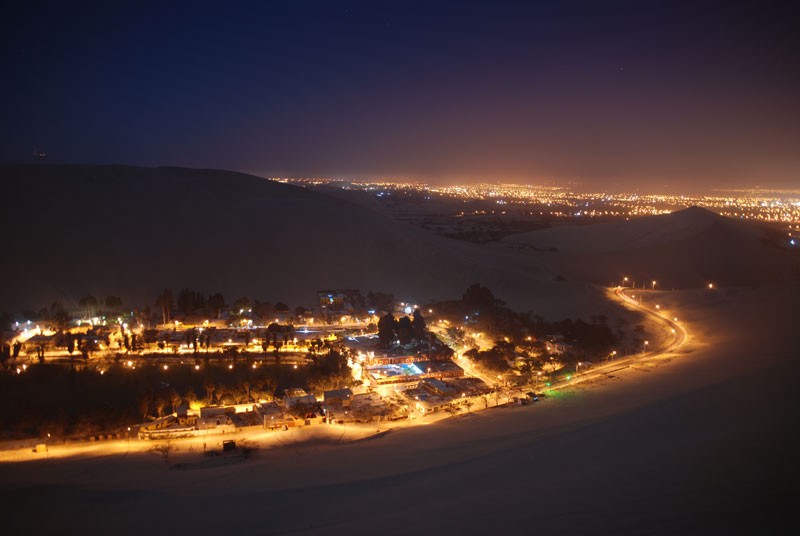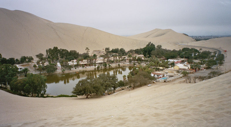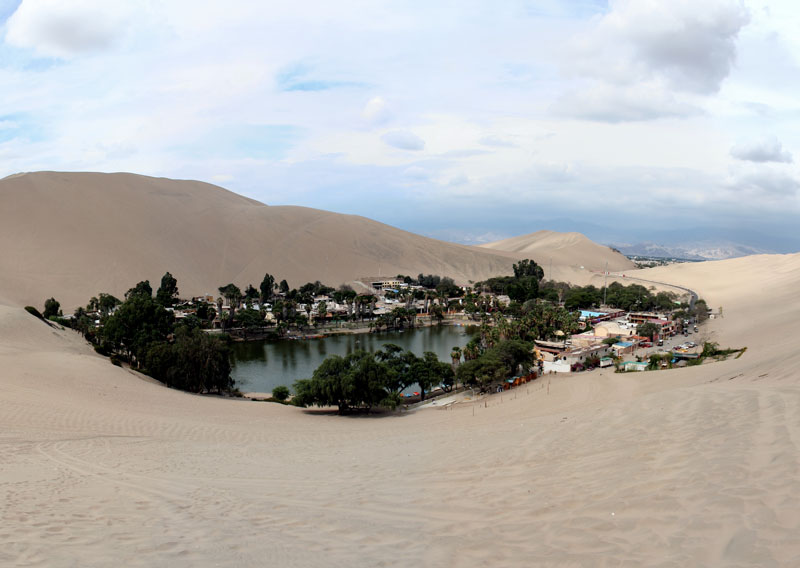 Huacachina morda ni tako slavna kot Nazca na jugu, a je prav tako čudovita. Ta puščavska oaza se nahaja le dobre 4 kilometre od mesta Ice na jugu Peruja. Svoj razcvet je doživela med leti 1940-50, ko jo je kot destinacijo za pobeg začela uporabljati perujska elita. Legenda pravi, da je oaza nastala, ko je mladi lovec tam med kopanjem zalotil lepo princeso. Ta je pred njim pobegnila, za seboj pa pustila bazen vode, iz katerega je kasneje nastala laguna. Da bi dostopali do podzemne vode, so domačini zgradili kar nekaj vodnjakov, zaradi tega pa se je raven vode v laguni močno znižala. Da te ne bi popolnoma izsušili, vodo sedaj dodajajo sami.