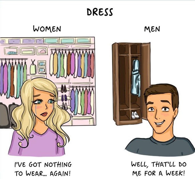 Oni jsou muži res z Marsa in ženy z Venere? Ali gre zgolj za frazo? Na spletni strani brightside.me so številne stereotipe o spolih prelili v humorne ilustracije. So razlike med moškimi in ženskami iz trte izvite ali držijo?