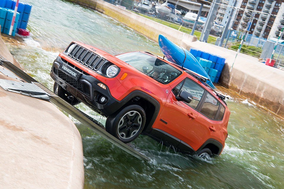 Proti slovinskému kanoistovi na divoké vodě Benjaminu Savškovi a kajakáři Petaru Kauzerovi by SUV Jeep Renegade na divoké vodě nemělo reálnou šanci, ale jeho schopnost vypořádat se s nejtěžšími terény (včetně přejezdů vody) je stále působivá. Dokázal to v atraktivní ukázce s Aimee Fuller, známou britskou snowboardistkou, která s kompaktním sportovně užitkovým vozem zdolávala běsnící vodu na vodní hladině při olympijském sjezdu na divoké vodě.