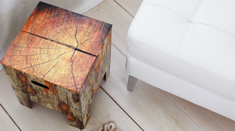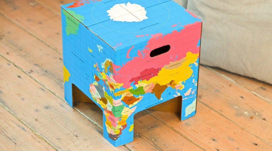 Proto je také jejich kolekce nábytku z lepenky, který unese váhu až 200 kg. Kolekce obsahuje židle, konferenční stolky, koše, truhly, vše z barevného, krásného, pohádkového kartonu. Motivy knih, staré opotřebované dřevo, portugalské ornamentální obklady nebo mapa dodávají výrobkům širší využití, a to jak pro děti, tak pro dospělé. Fascinující.