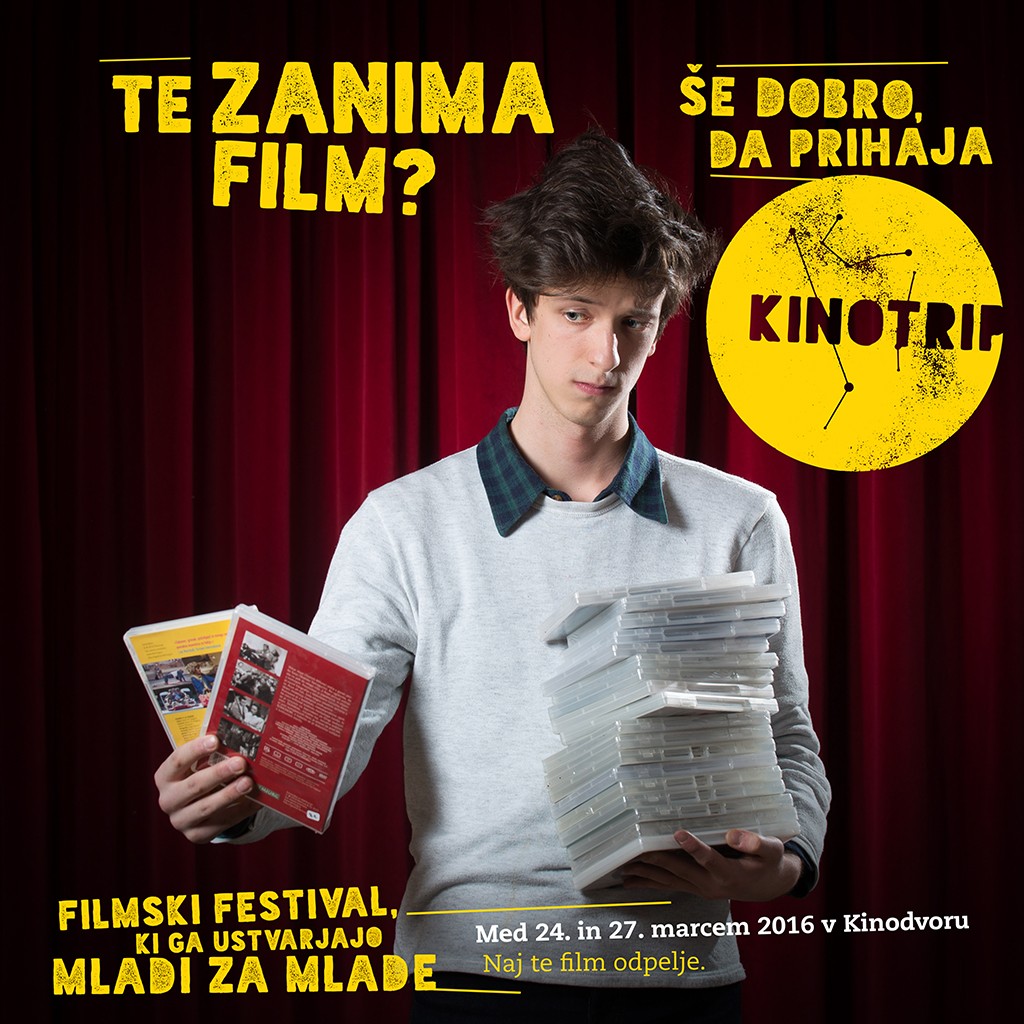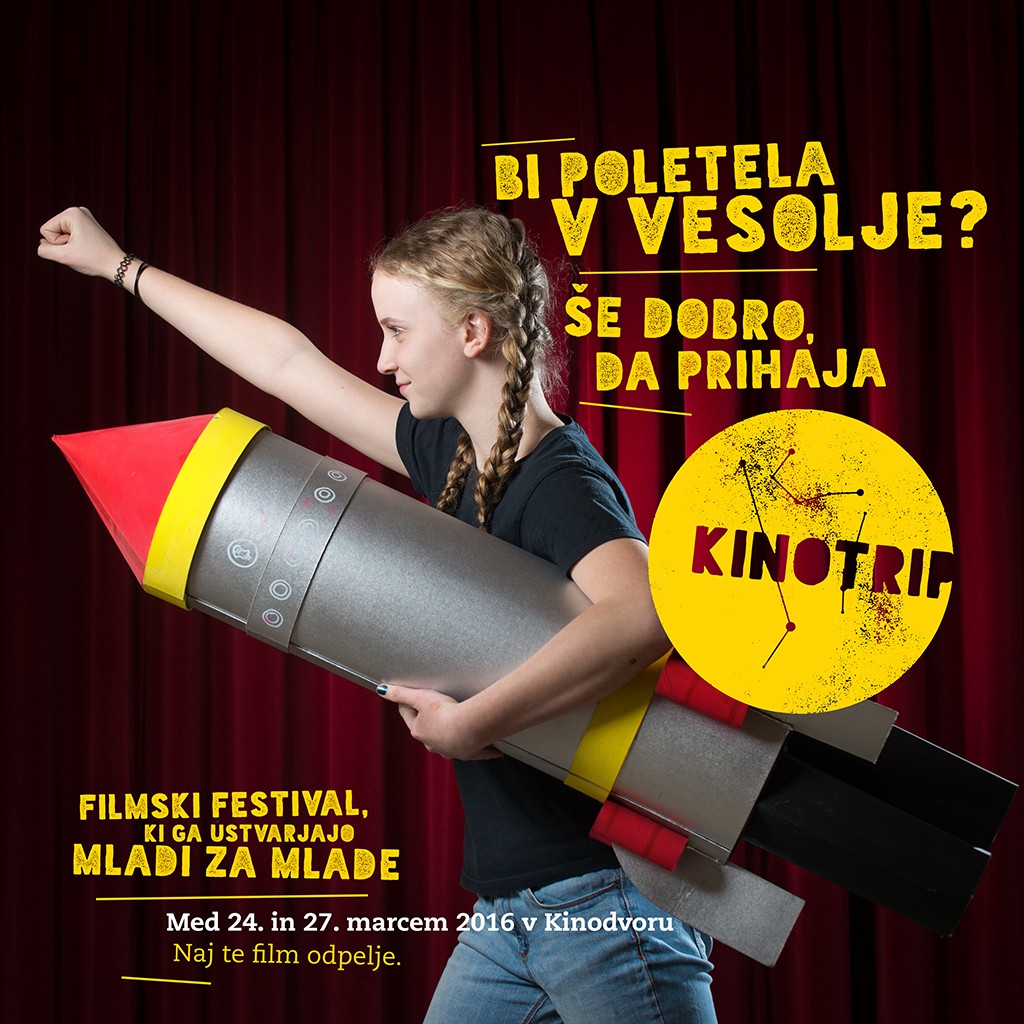 Od mladih za mlade. Od novembra se v Kinosál medi vsebina prvega mednarodnega filmskega festivala Kinotrip, festivala, ki so ga ustvarili mladi za mlade. Štiridnevni dogodek bo potekal med 24. in 27. marcem 2016, ko se bodo na filmskem platnu Kinodvora zvrstili animirani in dokumentarni film, grozljivka, filmska klasika in za poobedek še poslastica svetovne kinematografije. Poleg projekcij se bomo lahko udeležili pogovorov in druženj z gosti z domače in tuje scene ter delavnic (videa in kratkega filma, snemanja filmskih podkastov, VJ-anja z DIY-mikroskopom). Celoten (in še podrobnejši) program festivala Kinotrip bo 7. marca objavljen na spletni strani kinodvor.org/kinotrip.