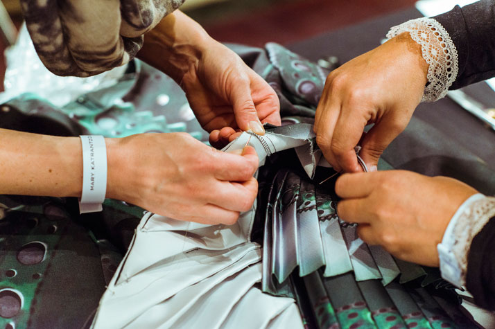 Zvoke, ki so jih posneli v studiu Mary Katrantzou, med nastajanjem kolekcije ( rezanje materialov, rezanje papirnatih krojev, hoja po studiu, šivanje,….) so vključili v ‘avdio posnetek’, ki je pravzaprav zvok njene nove kolekcije. Zvoke je zvočni umetnik, Stu Sibley, naknadno zmontiral, da je nastal svež posnetek, ki briše meje med umetnostjo in oblikovanjem. Vizualizacijo spremljajo abstraktni elementi in barve, vzeti iz modne piste.