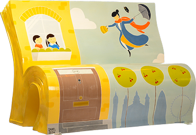 Motive so črpali iz širokega nabora knjig, ki bi jih morali poznati vsi: Alica v čudežni deželi, Sherlock Holmes, Dnevnik Bridget Jones, 1984, Peter Pan, Gospa Dalloway, Zgodbe iz Narnije in druge knjižne klasike. Kar daje projektu še dodatno vrednost pa je dejstvo, da bodo vse knjižne klopice septembra prodane na dobrodelni dražbi, katere izkupiček bo namenjen boju proti nepismenosti. Če boste v naslednjih nekaj tednih obiskali London, si lahko točne lokacije klopic ter zgodbo za vsako izmed njih ogledate tady. Kako izgledajo knjige, na katerih lahko posedate po parkih in ulicah Londona, pa si poglejte v naši fotogaleriji!