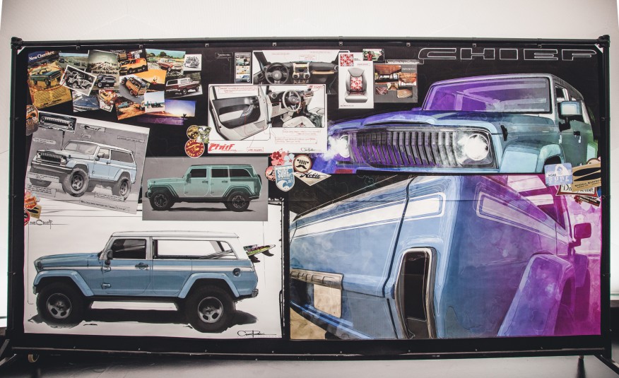 Nový koncept SUV Chief Jeep vychází z modelu Wrangler, ale jeho zdrojem inspirace byl model Cherokee z počátku sedmdesátých let (1974). Chief má mnoho retro prvků, chromovanou mřížku chladiče a čtyři sedadla pro cestující a je věnován zmíněnému Cherokee, který pochází z dob, kdy Jeep ještě zastřešovala American Motors Corporation (AMC). Na pláž a tam, kde je písek nahrazen nerovným terénem.