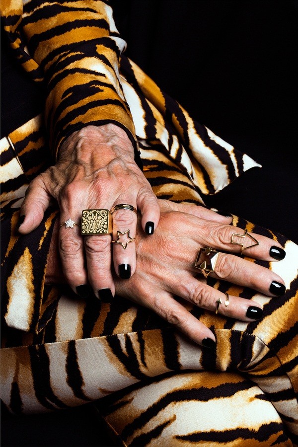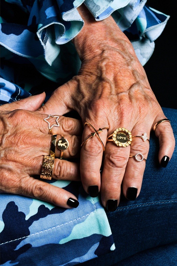 Karen Walkerová pro své kampaně si nikdy nevybrala vyšlapanou cestu. Vždy přísahala nekonvenční. Ani v této kampani nezklamala tradice Magické ruce. Představila svou novou kolekci šperků (prsteny). na rukou starších žen.