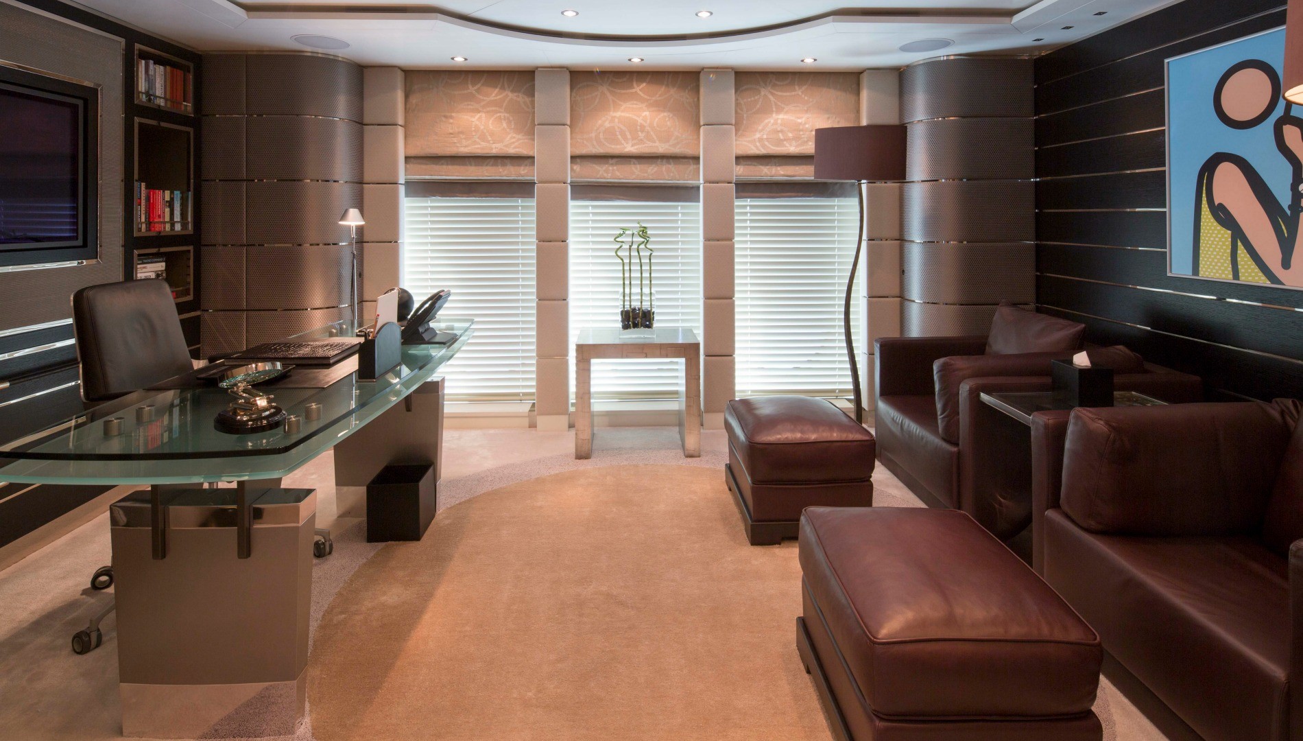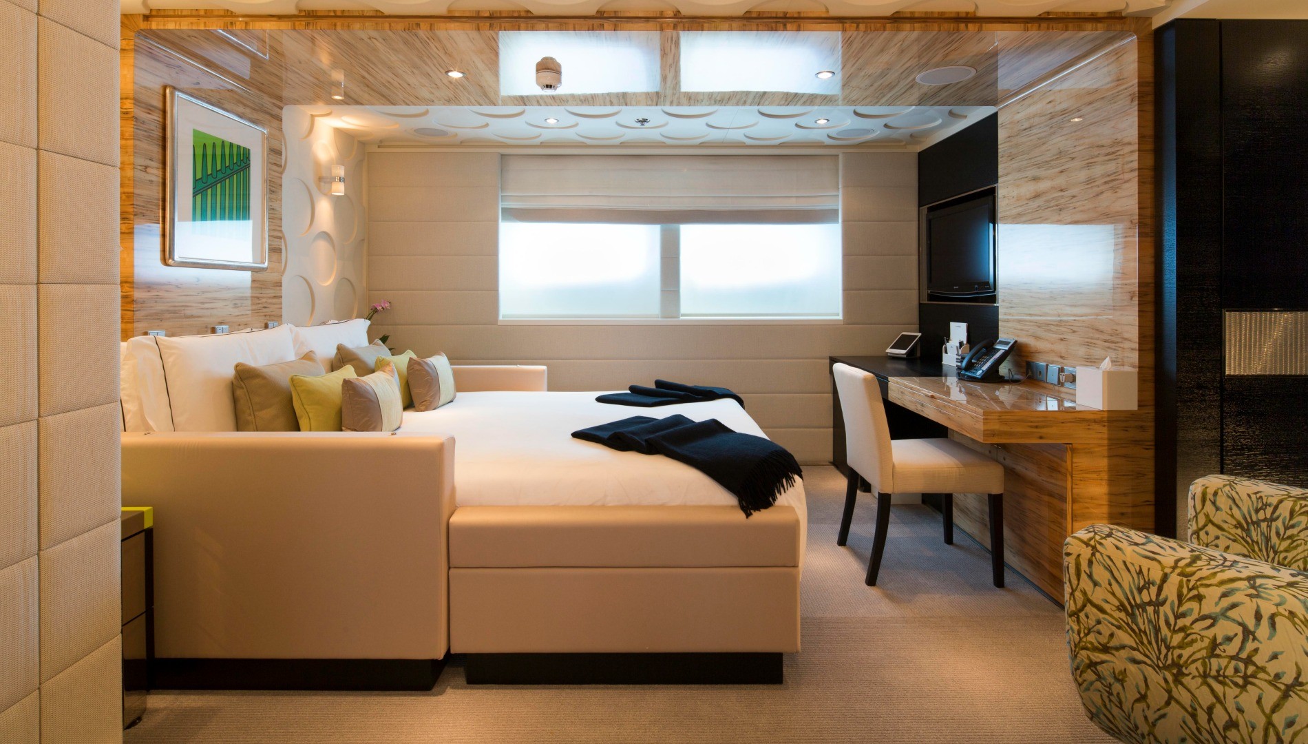 Plovilo sestavljajo najrazličnejše komponente, ki pripomorejo k veličastnemu videzu in udobju. Sončna paluba vključuje zunanji kino in pomični masažni bazen za 8 oseb. Jahta se ponaša še s savno, telovadnico, masažno sobo in zasebnim kozmetičnim salonom.