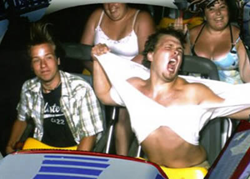 Premosorazmerno z višino tako narašča tudi tlukot srdce. In potem,… trenutek ”breztežnosti”, ki mu hitro sledi tisti žgečkljivi občutek v trebuhu. Jiiiihaaaa. Takrat strahu več ne morejo skrivati in Fotoaparát na skritem mestu sname tisto junaško masko iz časa stanja v vrsti. A to ne velja za vse, nekateri v adrenalinski vožnji naravnost uživajo, vraga, nekaterim je vožnja z vlakcem kot mirna mestna vožnja z avtomobilom. Pa vendar, kdo bi si mislil, da se na vlakcih smrti odvijajo tudi tako običajne stvari, kot so britje, igranje šaha, branje časopisa, obedovanje, ropanje, ipd.