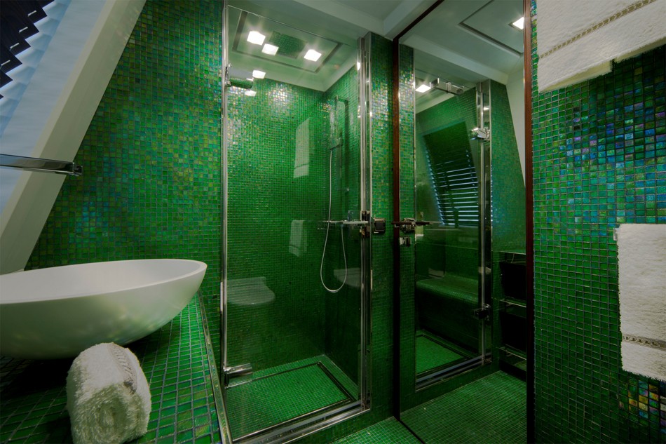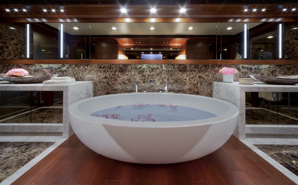 Prostora je tudi za velik akvarij in Yamahin klavir v jedilnici. Suita ima svoj balkon in svilena preproga ter ekran in ogledalo v kopalnici prevlečena s plastjo, ki je odporna na rošenje. Na zgornji palubi v dnevni sobi naletite na lestenec Swarovski, premore pa jasno tudi helipad in zunanje spa bazene. O vsem bodo še največ povedale slike, ki si jih oglejte v galeriji.