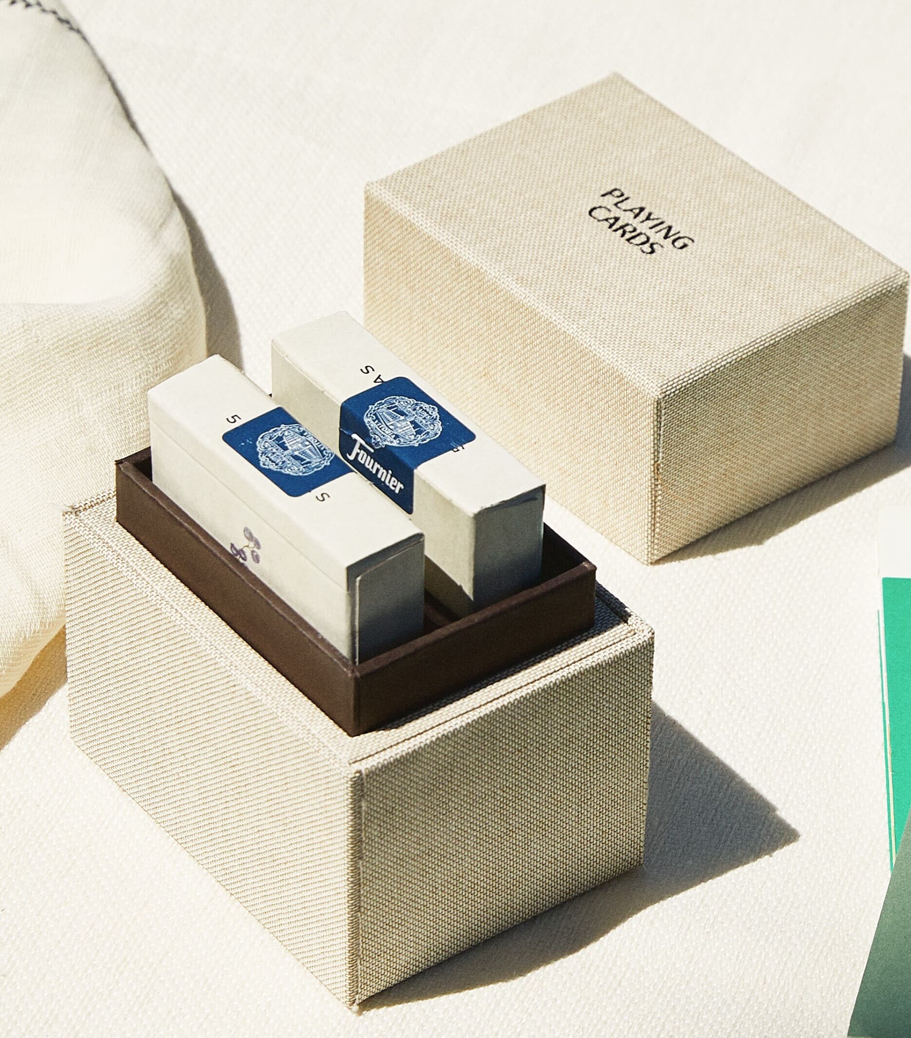 Křížová křížová hraexistuje i v menší verzi. Kromě dřevěných figurek obsahuje i bavlněný sáček na ukládání a přenášení dílků. Domino set je vyrobena z bukového dřeva v plátěném pouzdře. Sada pokerových karet s květinovými motivy vznikla ve spolupráci se španělskou značkou Heraclio Fournier, světoznámým výrobcem karet. Ceny deskových her se pohybují od 39 eur až po 219 eur.