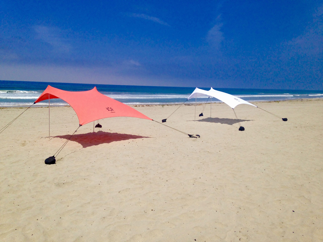 Zřídit slunečník Oni ne potřebujeme jen pár tyčinek a jeho látka nabízí víc než 50 UPF ochrana (UPF nebo UV ochranný faktor je pro tkaniny to, co SPF pro opalovací krémy, tedy faktor sluneční ochrana), což je obrovské, když uvážíte, že bílé bavlněné tričko má UPF mezi 10 a 15. Výhodou jeho tvaru je přizpůsobivost polohu slunce, protože stín na správném místě zajistíte pouze pohybem ze dvou připojených tyčí.