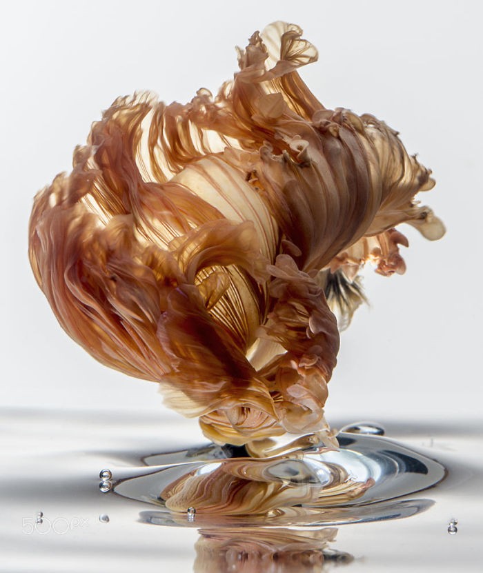 Visarute Angkatavanich je 48letý thajský fotograf, který Siamská bojovná ryba zobrazeny zcela jiným způsobem. S používáním křišťálová akvária, výkonné objektivy a velkolepé osvětlení vytváří fantastické fotografie těchto zvířat. Efekt je opravdu velkolepý, jak přeměňuje ryby na magické tvory, které vypadají, že se pohybují vzduchem.
