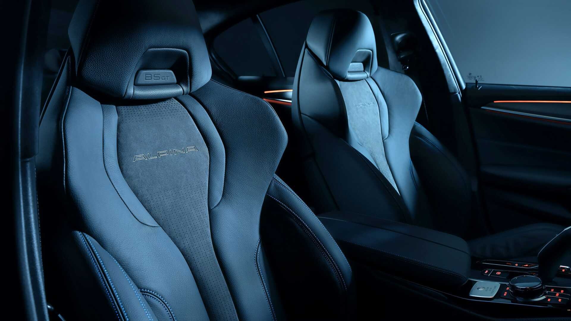 Interiér BMW B5 GT je stejně působivý, se standardní kůží Nappa a možnost celé kůže Merino a různé možnosti obložení a vylepšení interiéru, jako je obložení Alpina z ušlechtilého dřeva. Pro opravdový dotek na míru bude k dispozici omezený počet jednotek s čalouněnými sportovními sedadly v černé kůži Dakota s černými vložkami sedadel Alcantara, modrými akcenty a značkou Alpina.