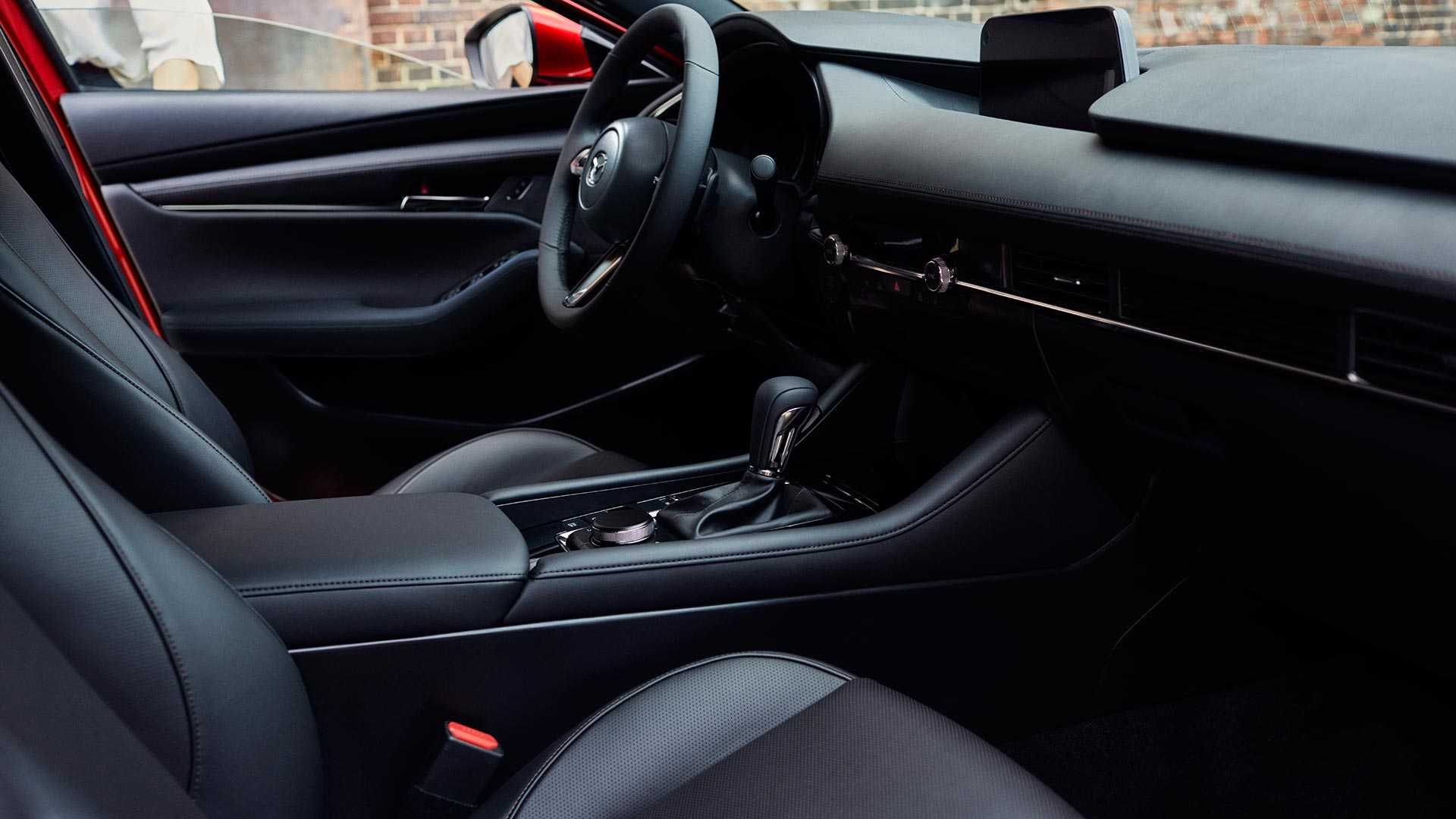 Silhueta Mazde3 s prisekanim zadkom deluje bolj sportovní, medtem ko ima limuzinska različica malce ostřejší linky a více podolgovat závěr zadka. Obe različici imata daljši in nizek prednji del, z izrazito masko in futurističnimi světlomety. Tanki A stebrički skrbijo za boljšo průhlednost iz avtomobila. Notranjost sledi filozofiji ‘manj je več’, kar je oblikovalcem še kako uspelo. Na sredini centralne konzole se nahaja 8,8 palce zaslon, pod njim pa se nahaja nekaj gumbov za nastavitev večine funkcij v avtomobilu. Prav tako je še vedno na voljo projekcijski obrazovka, ki prikazuje vse vitalne informacije v vidnem polju voznika. Mazda3 ima tudi nove pametne pomočnike, kot je na primer asistent pro přetížení, ki ima zmožnost nadzorovati pospeševanje, zaviranje in celo manevriranje z volanom. Pomočnik za řízení prečnega prometa preprečuje trke v slabo preglednih križiščih.