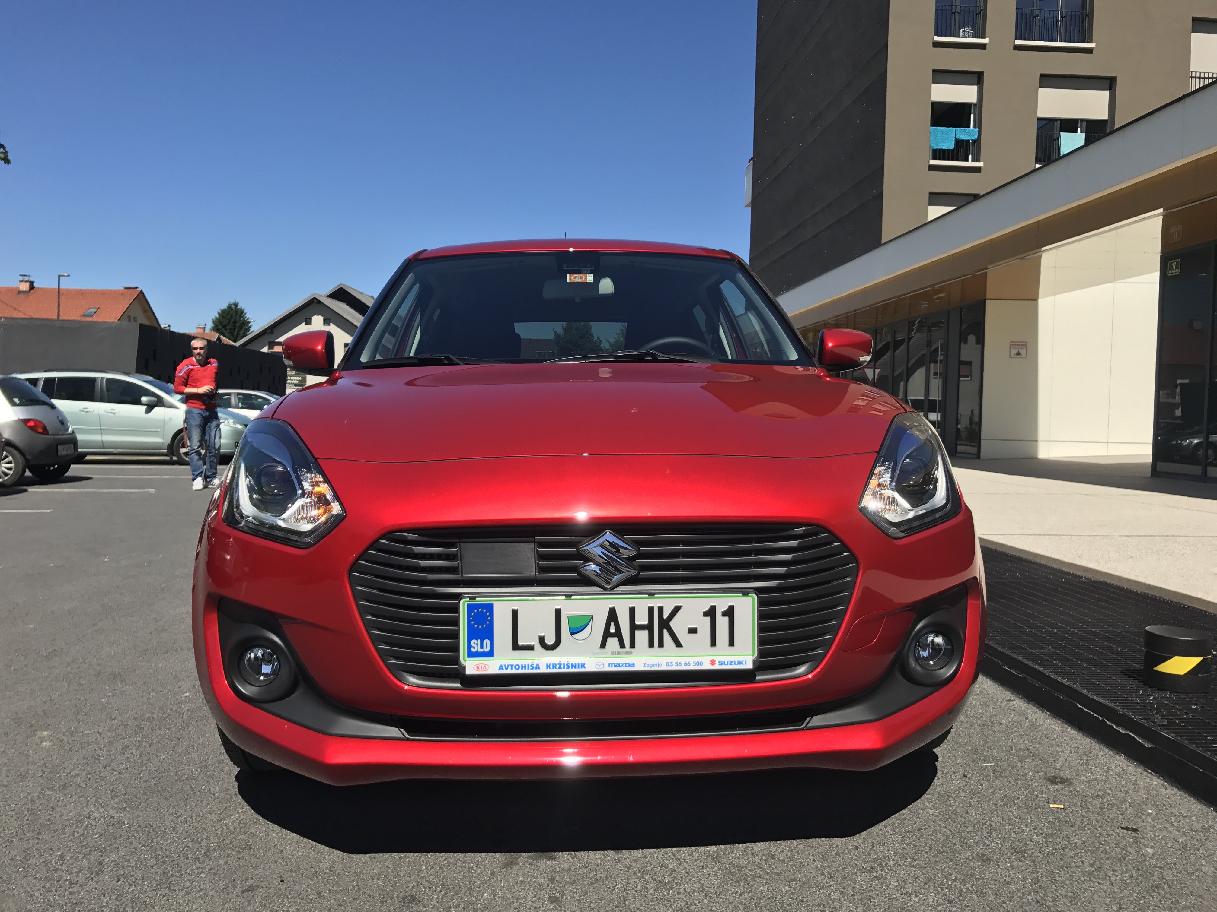 K novému Suzuki Swift 2017 změnily některé klíčové rozměry ve srovnání s jejich předchůdcem. Délka Rychlý je o 1 cm kratší, na výšku o 1,5 cm nižší a na šířku o 4 cm širší. Tím vytvořili kompaktnější vůz a ještě více ho přiblížili evropským kupcům. S tím novým Suzuki Nejprve jsme si všimli svůdných a příjemných linií Swiftu, agresivní přední masky a nápadnosti VEDENÝ-osvětlení. Přední i zadní světla se od sebe liší v závislosti na výbavě vozidla. K pěti stávajícím barvám byly přidány dvě zcela nové barvy, červená Glowing Pearl a modrá Metallic Racing. Dvoubarevný exteriér s jinak lakovanou střechou je k dispozici i pro třetí generaci Swiftu.