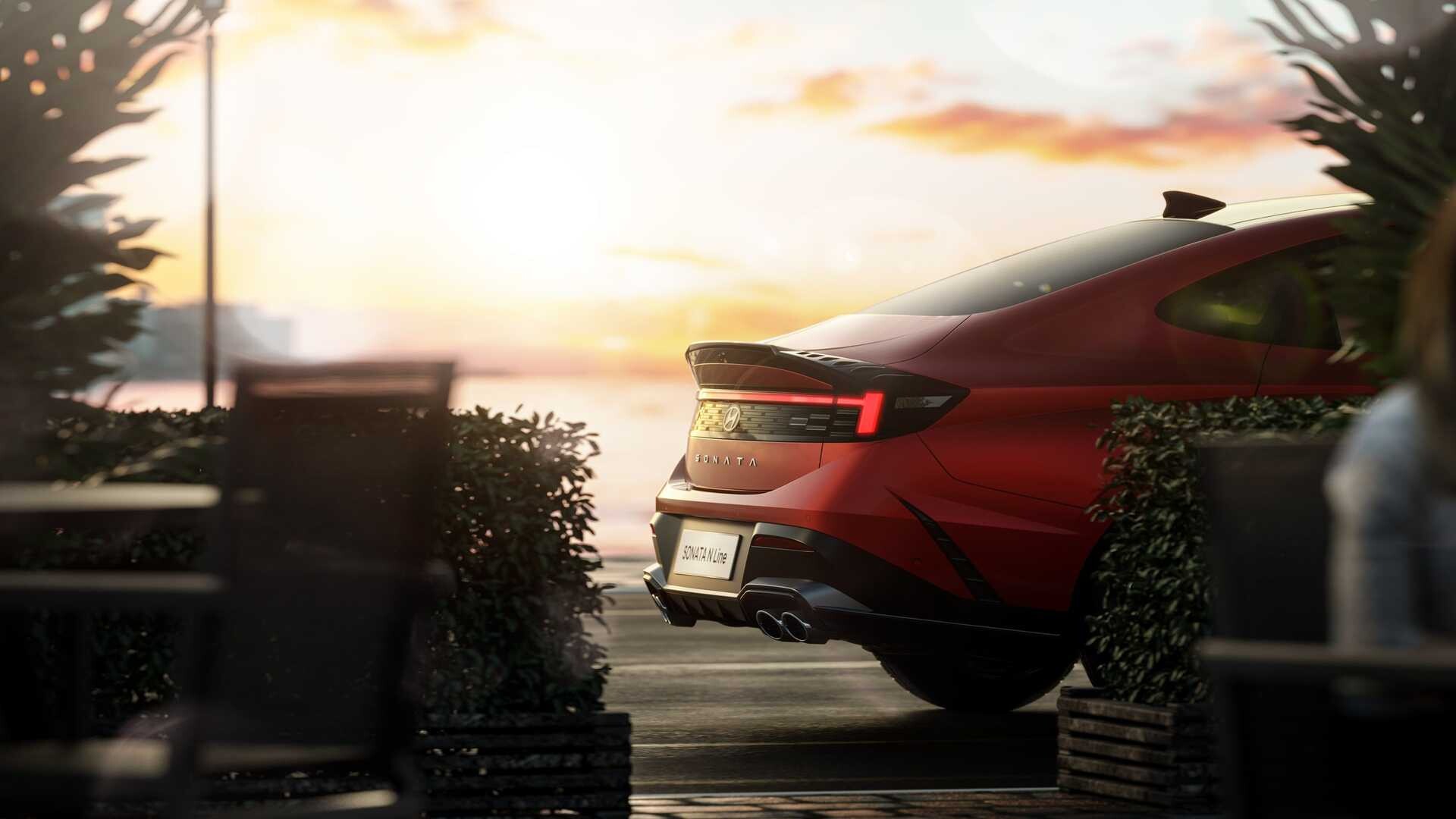 Linka N upoutá pozornost novým designem výfuku a exkluzivními 19palcovými litými koly. Hyundai přepracoval i zadní světla a představil plošší design, protože světelný podpis už nezasahuje do horní části víka kufru. Odznak Hyundai byl posunut o něco níže a nyní je pod světelnou lištou. Běžná verze i verze N Line mají přepracované nárazníky, které dodávají zádi nádech agresivity.
