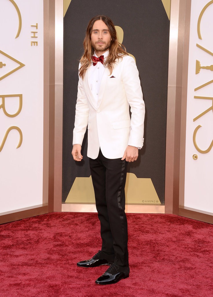 Dame pa niso bile edine, ki so ta večer izgledale ekstra modno. Tudi moški so tokrat namenili nekoliko več razmisleka izbiri oblačil. Jared Leto, dobitnik oskarja za najboljšo stransko moško vlogo, je bil eden tistih, ki je na preprogi najbolj izstopal. Igralec se namreč ni odločil za klasični črni smoking, ampak je izbral bel suknjič in videz popestril z bordo metuljčkom.