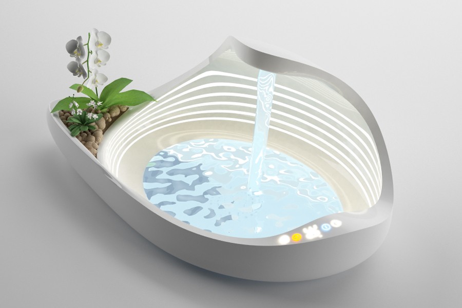 Zbirka je sestavljena iz 3 elementov: kopalnica, tuš in umivalnik. Vsak element v gladkih in organskih oblikah ima integrirane LED luči, ki ustvarjajo učinek svetlobne difuzije skozi prosojen material. Z prilagajanjem intenzivnosti in barve svetlobe si lahko privoščite prijetno kromoterapijo. Umivalnik ima še eno posebnost in sicer vgrajene cvetlične lončke, kjer lahko posadite svoje najljubše rastline.