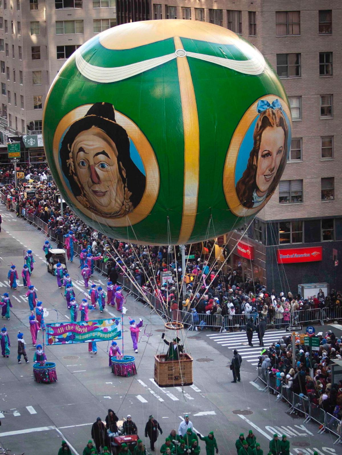 Letošnjo, že 87. parado so prvič v zgodovini skorajda preprečili močni sunki vetra. A je nato pri izredno nizkih temperaturah le ponudila triurni spektakel letečih znancev Spidermana, Hello Kitty in celo Strica Sama ter kar 14 metrov velik balon v čast 75. obletnici Čarovnika iz Oza. Opaziti pa je bilo moč tudi nekatere nastopajoče zvezdnike, kot so komedijant Jimmy Fallon, zvezda Ameriškega idola Kellie Pickler in pevka Cher.
