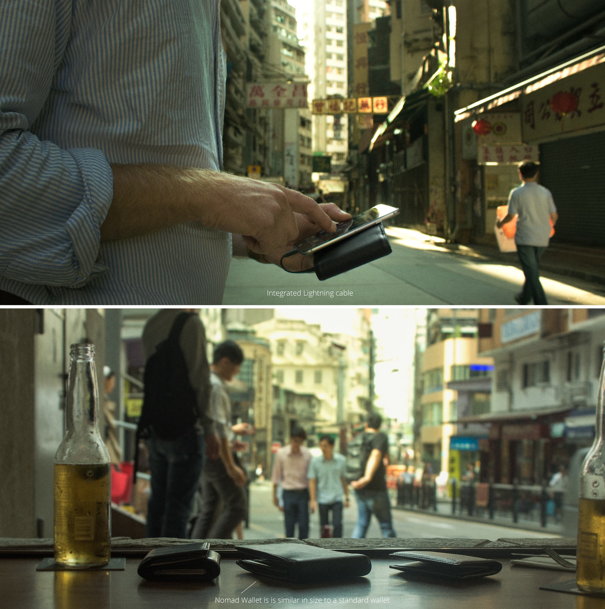 Nomad je inovativní peněženka, která se maskuje jako přenosná nabíječka pro iPhone, která je předurčena k záchraně vašeho života (no, spíše života vašeho telefonu). Smartphone je kromě peněženky a klíčů v dnešní době naším nepostradatelným společníkem, ale stejně jako máte na účtu vždy málo peněz, máte vždy málo baterie. Vtom zasáhne Nomad. Peněženku si stejně budete muset naplnit sami, ale nabije vám to telefon.