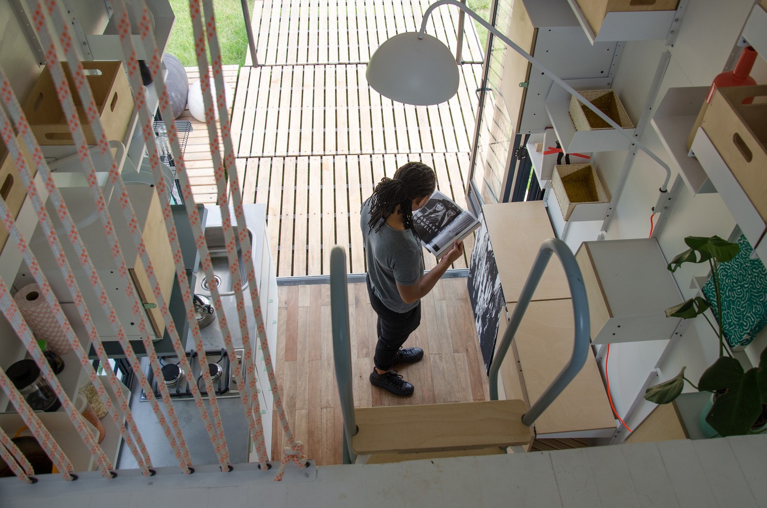 POD-iDladla to je Mobilní dům z té krabice jako ze škatulky. Má vše, co potřebujeme pro pohodlný pobyt, i když máme k dispozici pouze my 24 metrů čtverečních. Ale trochu vynalézavosti a dobrého plánování ze strany Clare da Cruz Almeida a společnosti Doktor a slečny a na pouhých 24 m2 nepůsobí stísněně, jak byste mohli očekávat u domu, který má ložnice pro dvě osoby (v mezipatře), pracovní prostor, který může být zároveň prádelnou, sprchovým koutem, toaletou, kuchyní a jídelním stolem (jsou naproti sobě) terasa s ochrannou střechou.