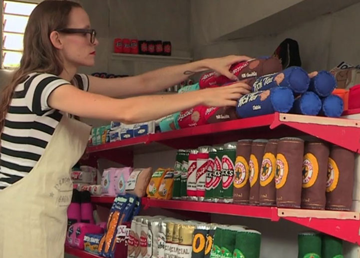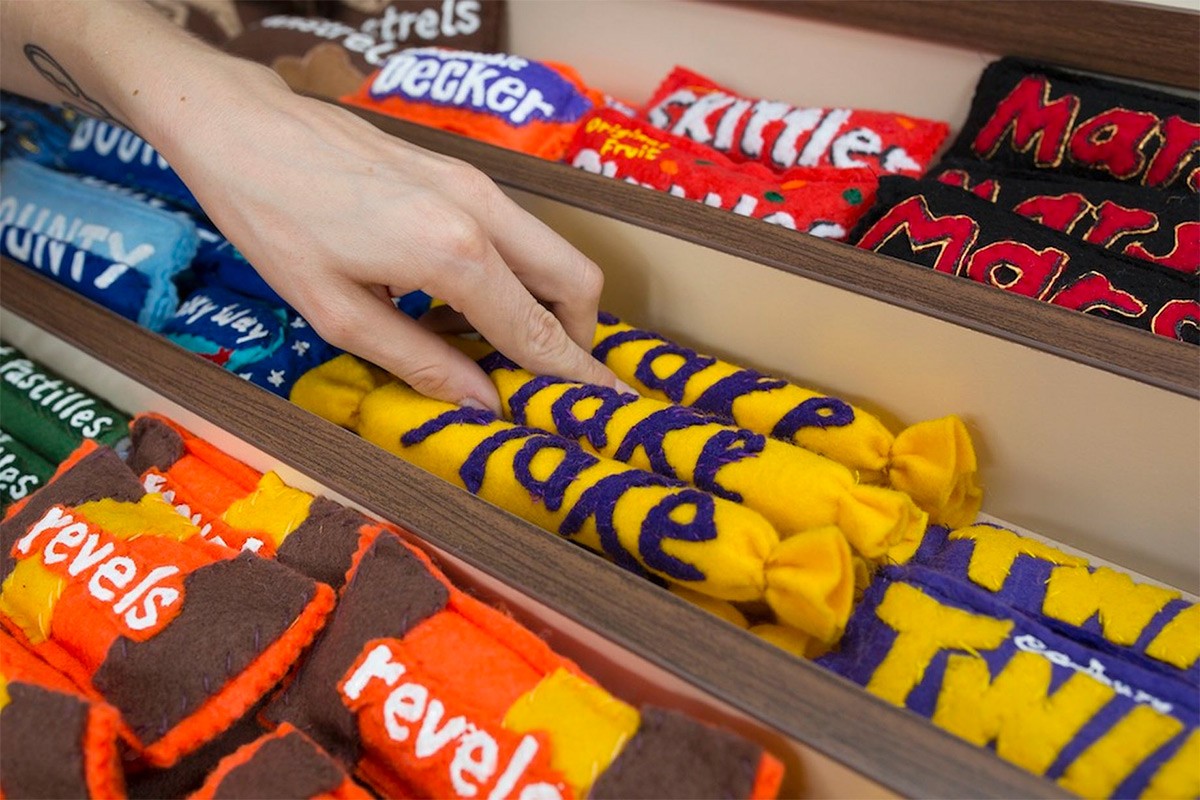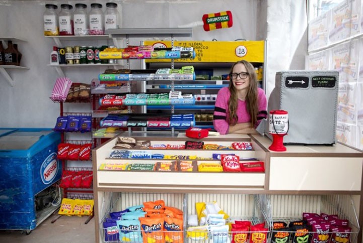 Mladý anglický umělec Lucy Sparrow Miluje šití. A dělala to pořád. posledních sedm měsícůBěhem této doby ušila více než 4000 potravinářských výrobků od známých značek vyrobených z plstiStejně tak obchod na rohu. v Bethnal Green ve východním Londýně plné sáčků s chipsy a mraženou zeleninou, časopisů, krabiček od cigaret, čokolád, plechovek a sladkostí – vše ručně šité, jedinečné a neuvěřitelně hebké.