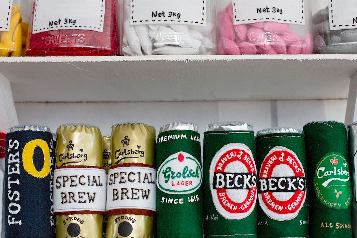 Kdybyste šli kolem The Cornershop v Londýně, na první pohled byste přes okna viděli jen obyčejný obchod s potravinami, plný běžných plechovek koly, krabic cereálií a časopisů. Pouze při bližším pohledu byste si uvědomili, že ve skutečnosti jsou všechny výrobky šité z měkké plsti. Se skvělým obchodním nápadem vytvořila Lucy Sparrow nejměkčí pop-up shop na světě, který nabízí více než 4000 slavných značek vyrobených z plsti.