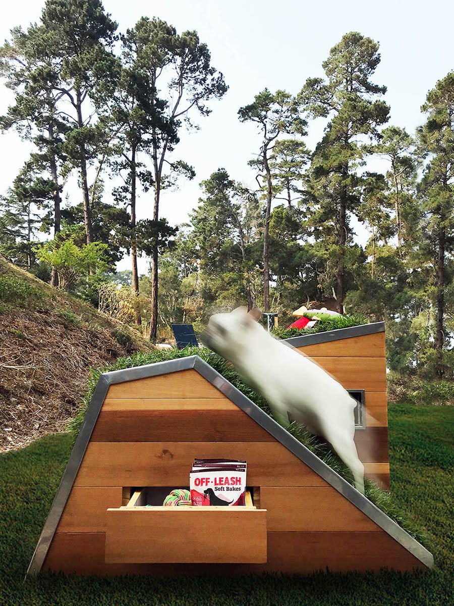 Technologicky vyspělý dům představuje filozofii amerického designového studia, které se řídí principy udržitelný rozvoj. Na akci se poprvé ukáže veřejnosti Soutěž o psí chaloupky Carmel, který se uskuteční mezi 11. a 15. zářím v kalifornském Carmelu.