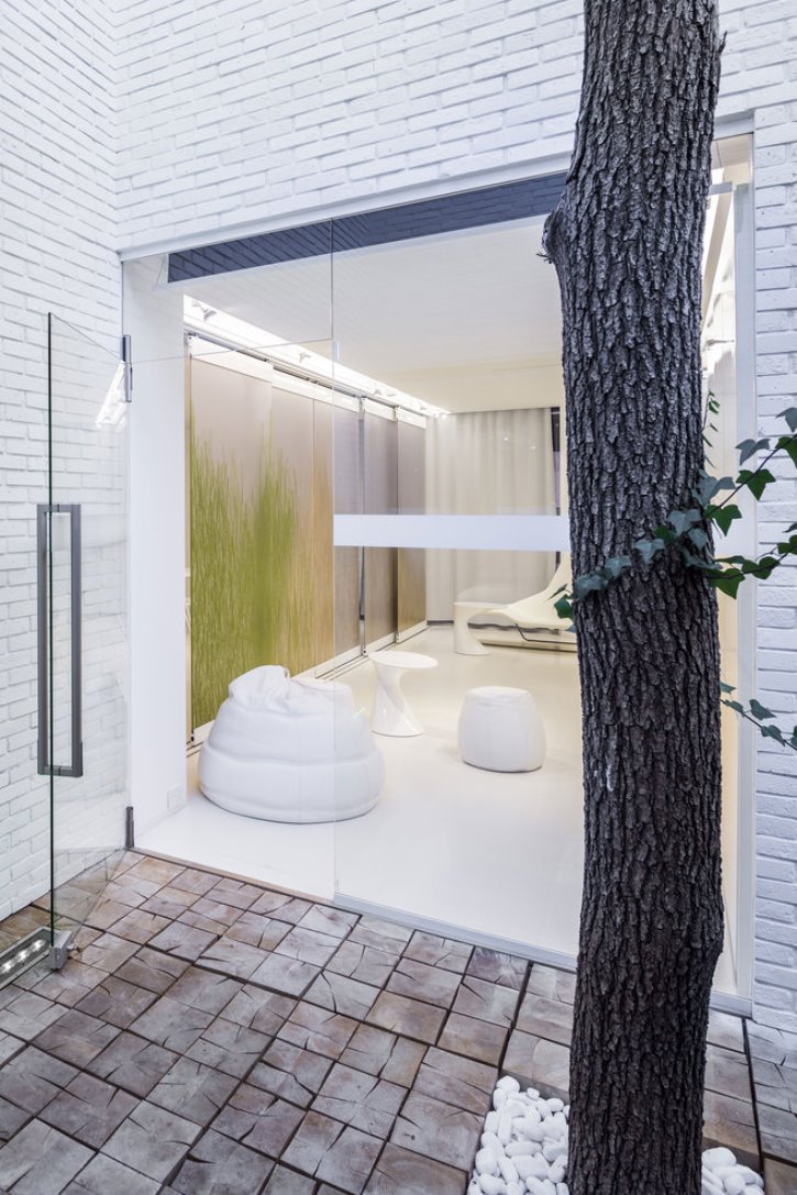 architekti týmy Architektura překonali sami sebe tímto designem bytu budoucnosti i díky skvělé volbě monochromatický styl minimalistického interiéru a mnoho Prvky obrazy přírody uvnitř uzavřeného prostoru, které působí barevně na pohyblivých stěnových panelech vícerozměrné koláže. Celý byt doplňuje vyspělý světelný a zvukový systém, který lze ovládat s pomocí naší pomoci aplikací pro mobilní zařízení. Flexibilita prostoru se odráží i v multifunkčnosti bytu budoucnosti, který lze považovat za jakýsi hybrid mezi panelákem, výstavním prostorem, hotelovým pokojem, uměleckou galerií a dokonce i laboratoří.