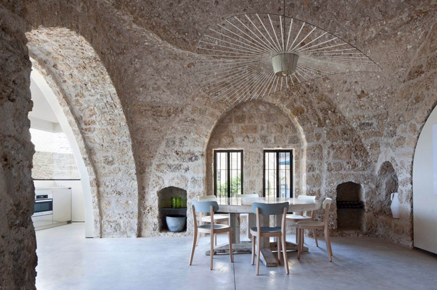 Nejvíce dominantou pokoje jsou kamenné oblouky, které se architekti rozhodli zachovat a doplnit o moderní materiály a nábytek. Úcta k minulosti budovy se projevuje v zachování objemů a proporcí a kontrast mezi minimalistickými liniemi nových intervencí a měkkostí starých zdí dodává místnosti domáckou atmosféru. Velká okna propouštějí vzduch naplněný vůní Středozemního moře, ale zároveň silné zdi chrání obyvatele před letními horky.
