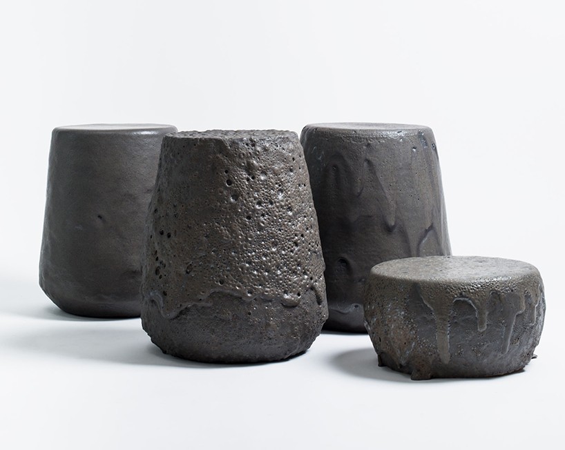Stolčki so nastali za newyorško umetniško galerijo Friedmanův pás, izdelani pa so iz peresno lahke magmatske kamnine imenovane bazaltni andezit najdene na aktivnih čilskih ognjenikih (Čile je prava dežela vulkanov, saj se jih v tej južnoameriški državi nahaja okoli 2000). Pod magmatsko prevleko se nahaja kalup iz netopljive mešanica aluminija v prahu, grafita in gline obdelan pri 1300 stopinjah Celzija.